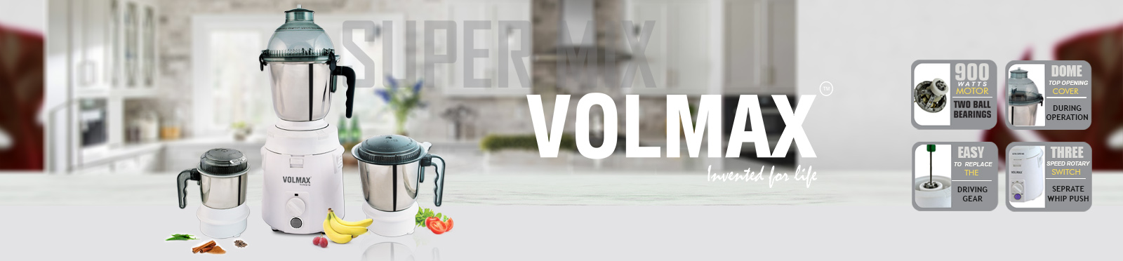 Volmax mixer grinder is a practical and compact option for everyday kitchen needs. It has 3 stainless steel jars for varied applications. The Dome jar is for tough wet grinding like Idly paste, while the other 2 jars are for dry grinding and chutney grinding.